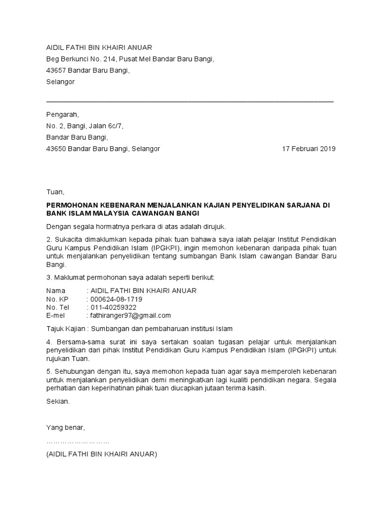 17 apr 2014 kepada : 100%(2)100% found this document useful (2 votes). Majlis agama islam selangor (mais). Pengurus cawangan bank islam malaysia berhad no 21 jln menteri 45300 sungai besar selangor darul ehsan. Bank islam malaysia berhad diperbadankan pada tahun 1983 dan adalah bank pertama yang mengamalkan konsep perbankan islam sepenuhnya di malaysia.