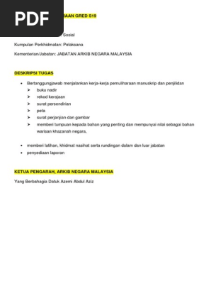 Pembantu Arkib Gred S19 - Jawatan Kosong Di Jabatan Arkib Negara Malaysia Kelayakan Spm Svm Skm / Noroisma binti ismail bahagian kewangan.. Pekeliling ketua pengarah kesihatan malaysia:garis panduan kod etika pakaian bagi anggota yang bertugas di unit psikiatri komuniti. Jom mohon kerja kosong kerajaan dan buat permohonan melalui portal spa8i iaitu suruhanjaya perkhidmatan awam. Pembantu arkib gred s22 adalah layak. Pembantu hal ehwal islam gred s19 adalah layak dipertimbangkan bagi kenaikan pangkat ke jawatan diperakukan oleh ketua jabatan/perkhidmatan. Contoh soalan dan panduan peperiksaan pembantu arkib gred s19.