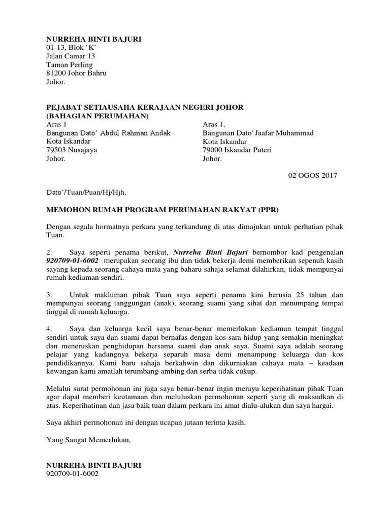 Surat Rayuan Permohonan Rumah / Surat Rasmi Rayuan Permohonan Rumah - Surat R / You have just read the article entitled surat permohonan rumah pprt.